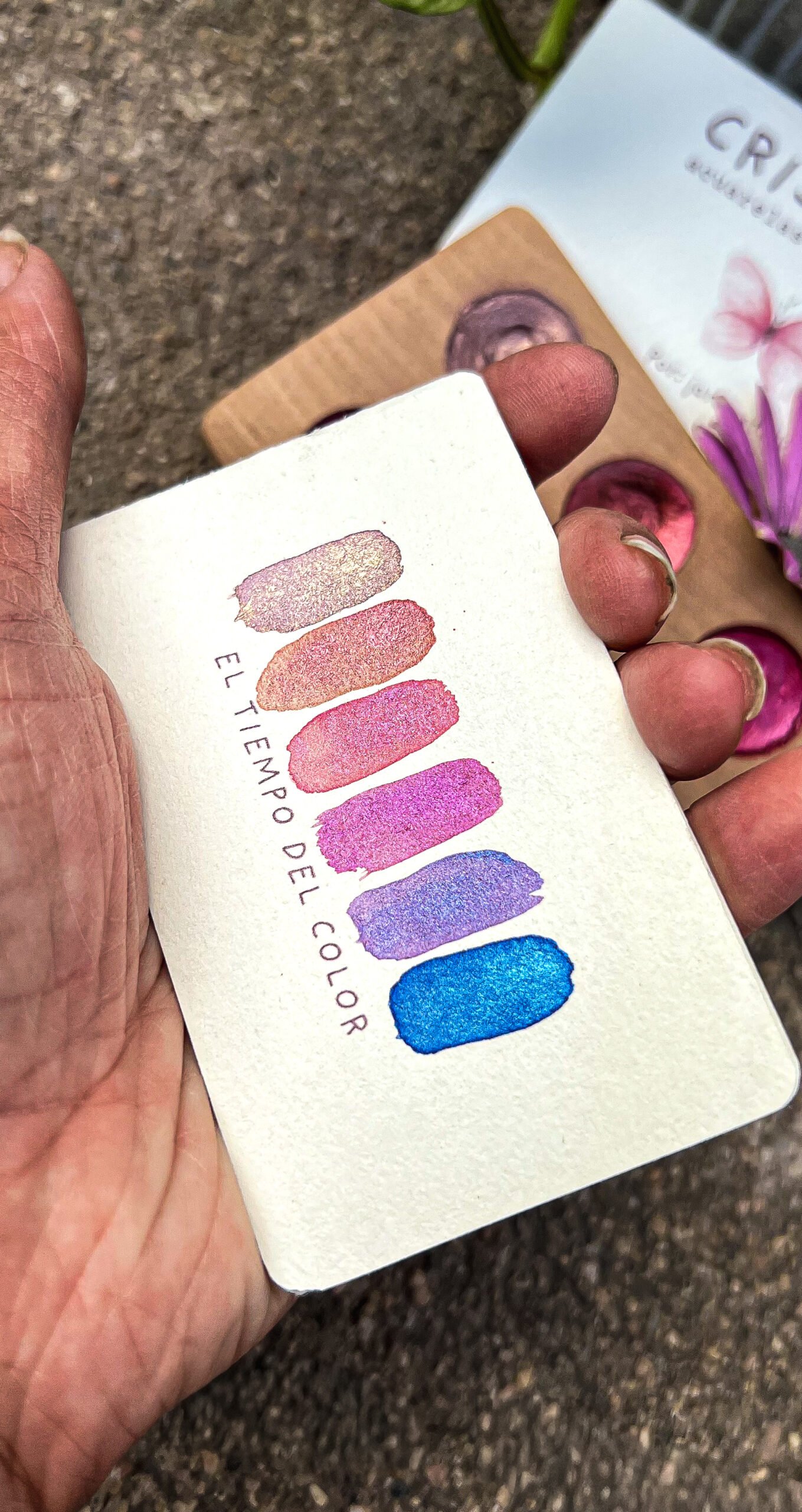 Al despertar estos pigmentos, nace el impacto sutil de una libertad que ya no tiene vuelta atrás. El brillo aparece cuando la superficie recibe luz y el papel se inclina: no es estridente, es vibración. Un destello que acompaña el gesto.