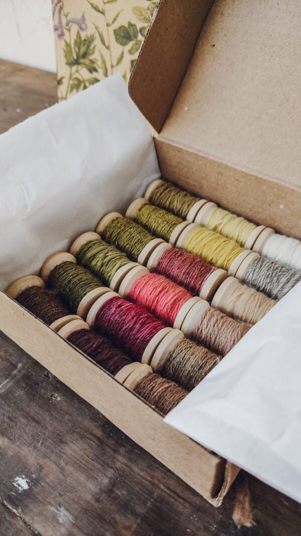 Este kit está compuesto por un mix de lanas hiladas a mano y en rueca por un grupo de artesanas de Perú arraigadas en Córdoba.